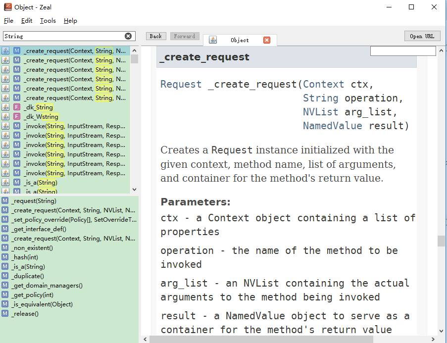 可以看出,如果作为Java开发者,我很要的是Dash所提供的给我的东西,而Zeal提供给我的确实上边的内容,但是直接搜索方法的话,效果还是很好的: