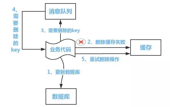 (6)请求A试图去删除请求B写入对缓存值,结果失败了;ok,这也就是说。如果第二次删除缓存失败,会再次出现缓存和数据库不一致的问题。