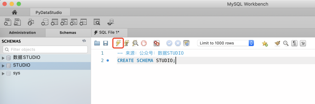 在 MySQL Workbench 中创建数据库有两种方法可以选择。