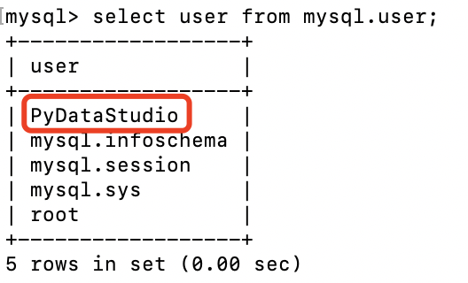 从上图可以看到 “PyDataStudio” 用户已经创建成功。