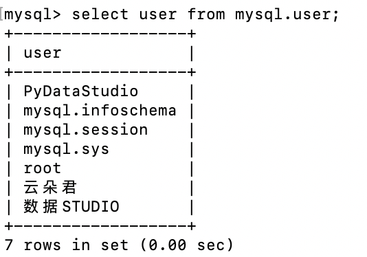 DROP USER 云朵君@localhost, 数据STUDIO@localhost;
