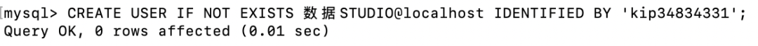 CREATE USER IF NOT EXISTS 数据STUDIO@localhost IDENTIFIED BY 'kip34834331';