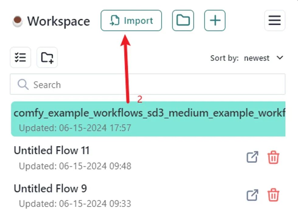 点击 Import 导入前面的 sd3_medium_example_workflow_basic.json 文件