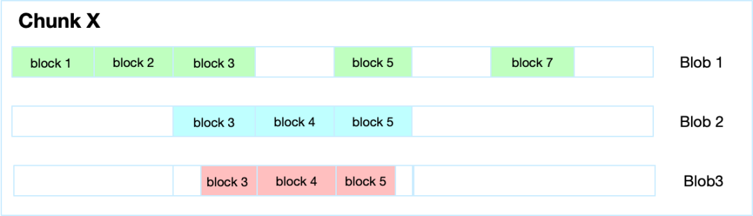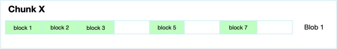 文件在写场景时,提高性能减少Blob数量,每个 Chunk 默认只生成一个 Blob,每次直接写入对应的数据块,我们称之为 block。具体如下图所示: