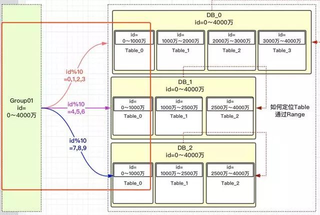 2)group01组有3个DB,那一个id如何路由到哪个DB?