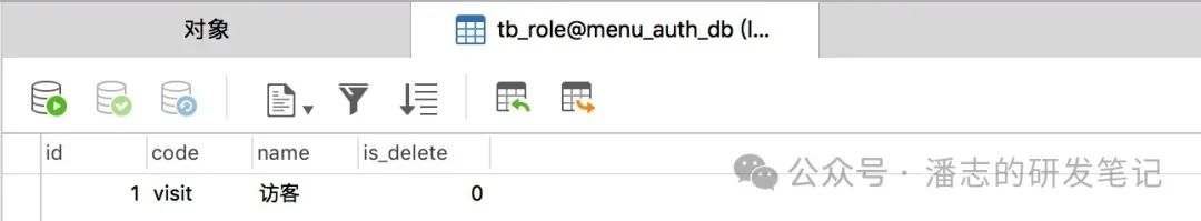 为了方便项目后续开发,在此我们创建一个名为menu_auth_db的数据库,SQL 初始脚本如下: