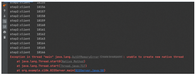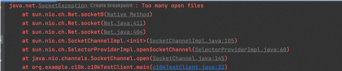 处理完文件描述符过多的问题之后,继续重新跑客户端,又报错了。