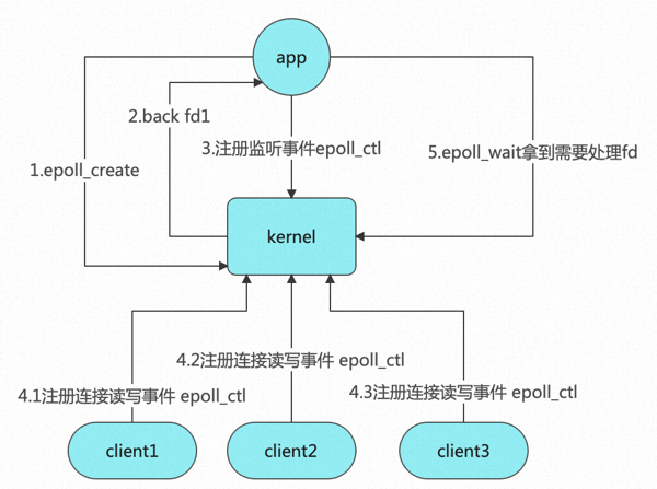 * epoll模式下: 通过epoll_ctl把新客户端fd注册到内核空间