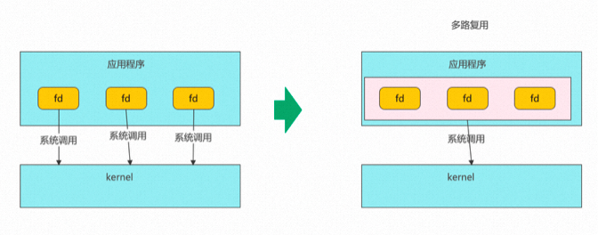 多路复用是依赖内核的能力,不同的操作系统都有自己不同的多路复用器实现,这里以linux为例,多路复用又分为两个阶段。