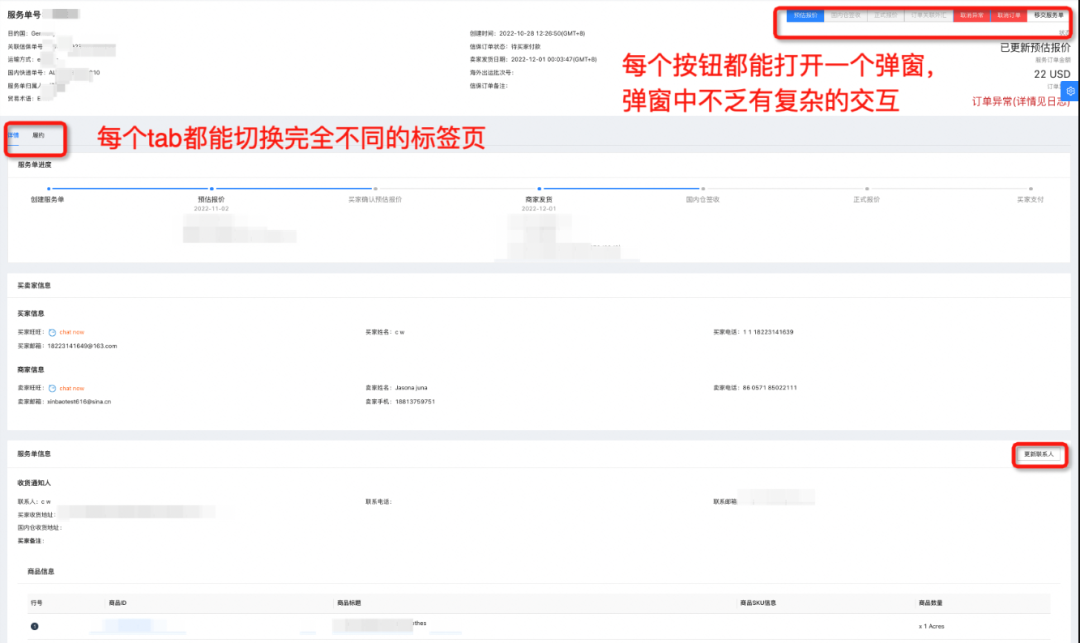 在日常开发中,遇到非常难以维护的页面是常态,相信不少同学也为此苦恼过,笔者在业务开发中总结了些经验希望对大家有所启发。下图是一个较为复杂的详情页、表单页,我截取了其中一小部分作为示例: