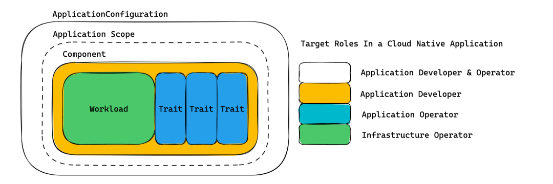 详细来说,OAM 基于 Kubernetes API 资源模型(Kubernetes Resource Model)来标准化应用定义的规范,它强调一个现代应用是多个组件的集合,而非一个简单的工作负载或者 K8s Operator。所以在OAM的语境中,一个Java容器和它所依赖的数据库,以及它所需要使用的各种云服务,都是一个“订单服务”应用的组成部分。更进一步的,OAM把这个应用所需的“运维策略”也认为是一个应用的一部分,比如这个Java容器所需的HPA(水平自动扩展策略)。