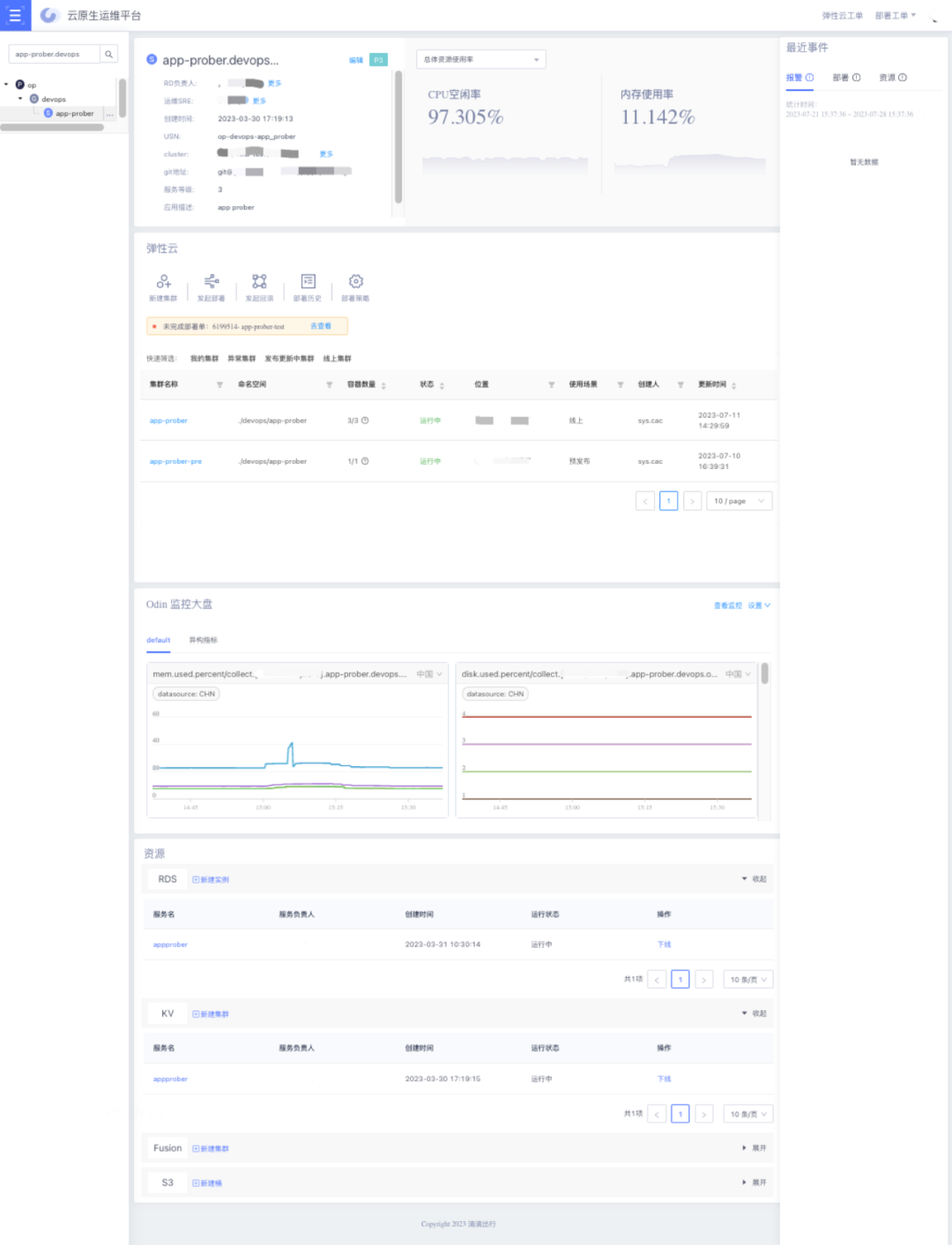 以应用(服务模块)为中心重新组织运维管控功能(部署/弹性云/观测),结合应用中心将应用(服务模块)与资源关系做了绑定及维护,解决生命周期管理等问题。
