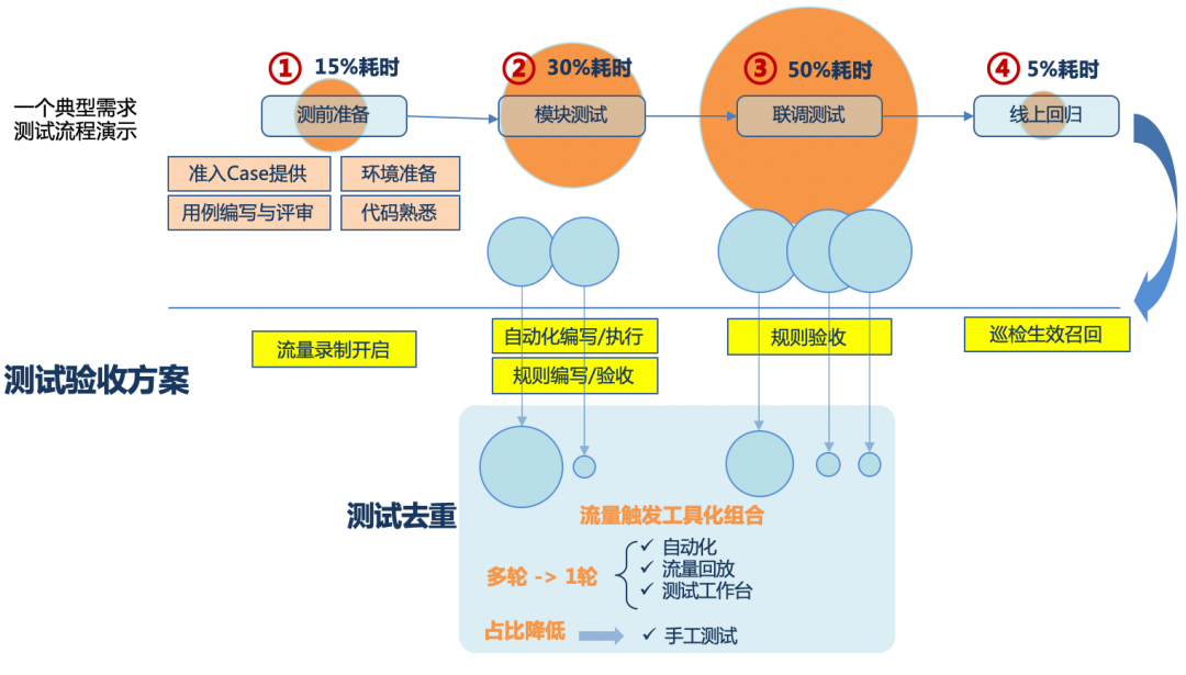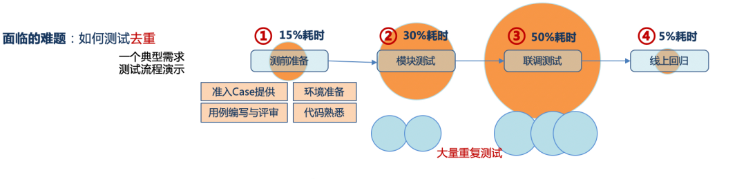- 我们一个典型需求在不同角色如RD、QA、PM之间存在较多的重复测试,在不同服务QA(服务端QA、客户端QA、算法策略QA)之间也存在较多的重复测试。
