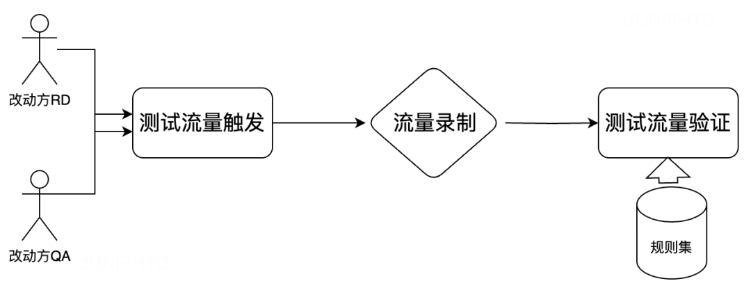 - 测试流量触发与测试结果验证分离后,我们可以将测试流量触发交给改动方研发/测试,只专注解决测试结果验证,从而解决一些业务在团队内不闭环的问题。