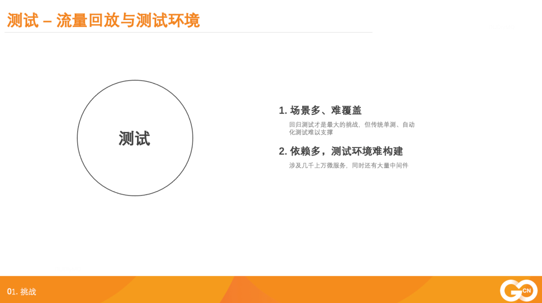 对于小体量的微服务架构,靠个人或者一个团队就可以快速把测试环境搭建起来,那大家可以设想一下,如果有几千甚至上万个微服务时,靠个人或者一个团队很难构建出一套稳定的测试环境,更别说人手一套。其次,在微服务架构下如何进行回归测试,也就是说这次变更到底影响了什么,没有人能说清楚,即使能说清楚,那能不能把所有的场景都准备好,进行回归测试呢?——很难。