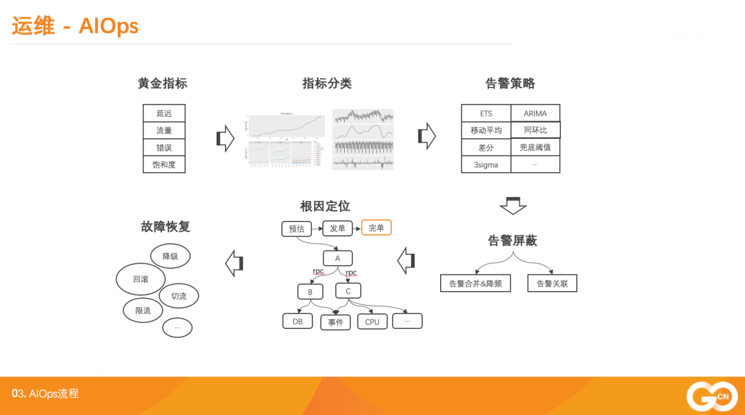 这个数据非常重要,前面我们研发阶段提到的统一数据,其实就是在做这个事情。在整个运维体系里,最重要的就是标准化数据,其实就是服务机器学习的特征工程,这个几乎占了70%以上的成本。
