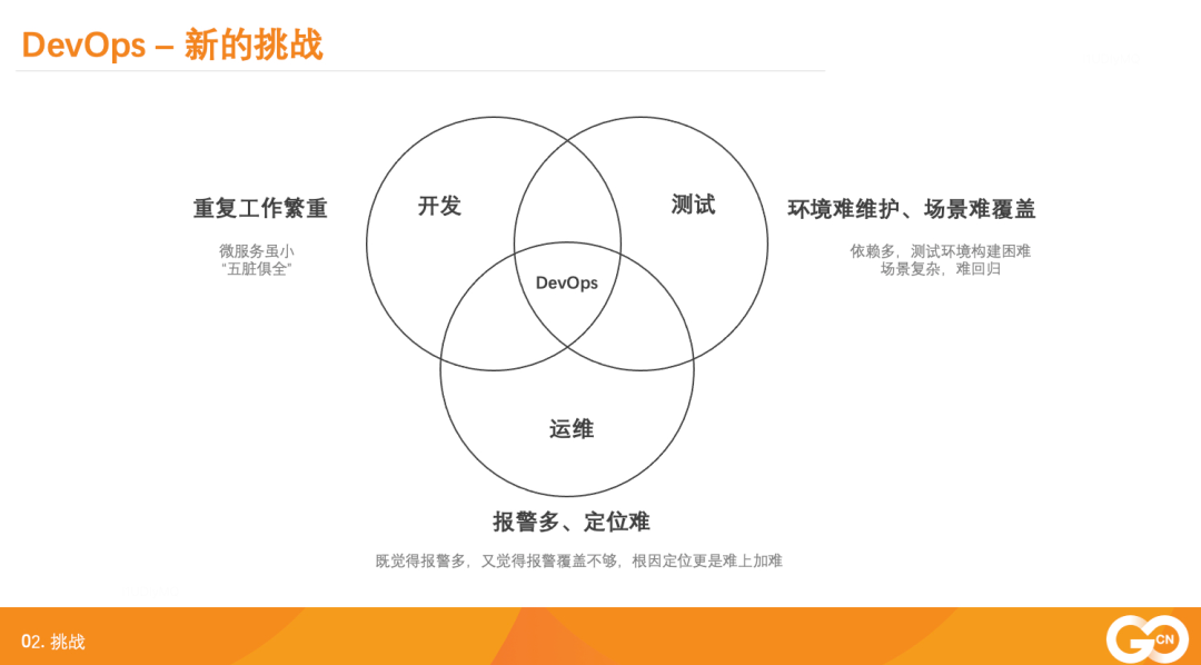 从下图来看,滴滴与业界其他公司在DevOps面临的挑战几乎是类似的,无非是围绕 DevOps 上层的业务挑战和下层的技术架构挑战。