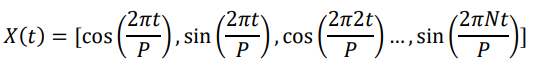 其中,P表示周期(年用365.25,周用7),N表示使用的逼近项数目(年用10,周用3)。
