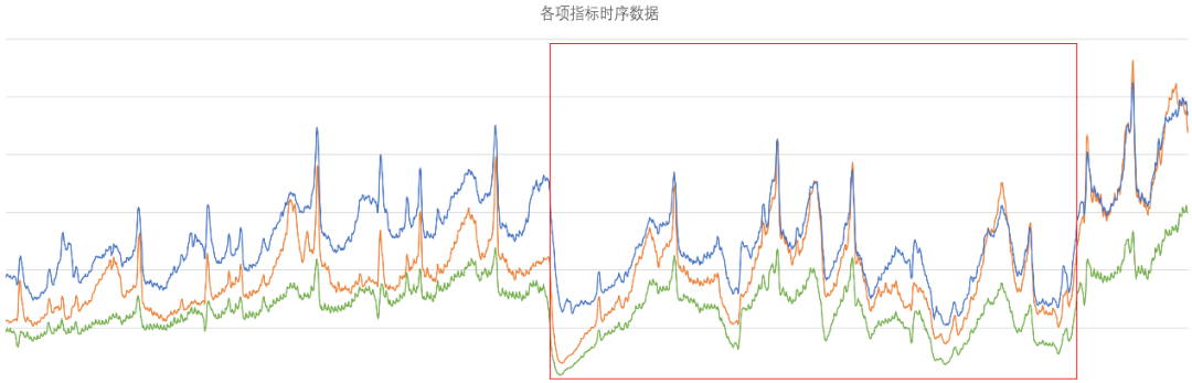 经过分析,自然状态下的某频道的流量、订单量等指标具有明显的周期性和趋势性,但这种周期性和趋势性在疫情期间无法有效体现,如图红框所示,在疫情期间各项指标的时序数值,较之疫情前后没有明显的周期性和趋势性,受疫情政策的影响较大。而经过22年底至23年初国内对疫情的快速过峰,23年的各项指标序列基本恢复了疫情前的周期性和趋势性,我们的目标是预测23年恢复自然状态之后的指标,因此考虑剔除疫情期间(2020/01/20~2023/01/19)的数据。
