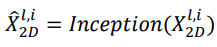 对于每个频率分量的二维张量,使用2D卷积提取信息,此处使用Inception模型: