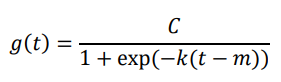 其中,C表示上限容量,即g(t)所能达到的上界;k表示增长率;m表示偏移参数,趋势项斜率发生变化的转折点。调整m可以对曲线进行左右平移。在具体的实现中,C和k都是时间t的函数,且k的变化是不连续的,为了使g(t)连续会引入一系列复杂的变换,在此不赘述。