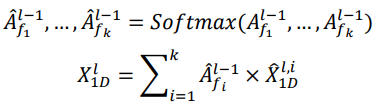 将上一步中得到的一维表征,与其对应的频率强度进行加权求和,得到一个时间块的最终输出。