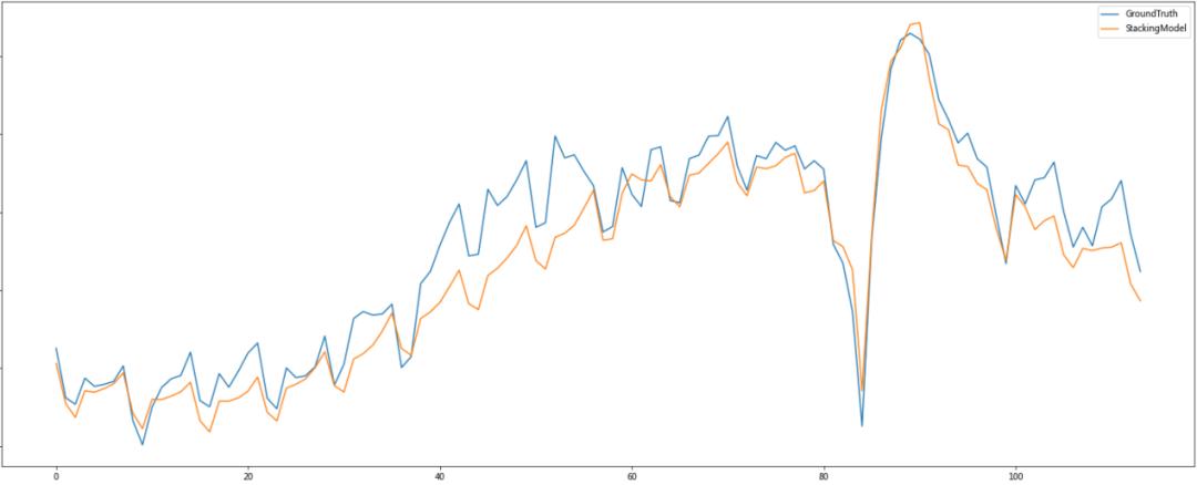 图像表明,TimesNet模型也无法捕捉到突变点的变化,这可能是训练数据太少导致的。为了能够捕捉到突变点,通过集成Prophet等对突变点较为敏感的传统模型,结果表明集成模型在保证预测精度的同时,还能较好地捕获突变点的变化,且MSE和MAE均小于原模型,如下图所示。