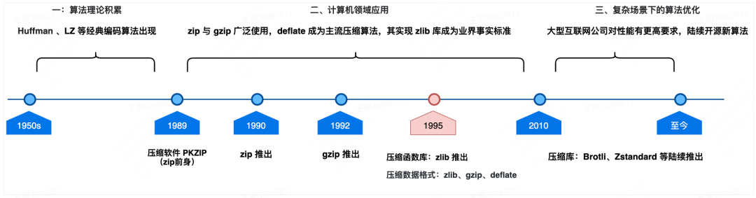 计算机领域的数据压缩技术的发展大致可分为以下三个阶段: