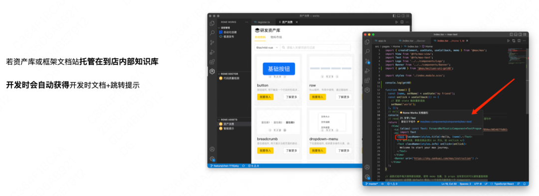 开发时也会给到大家文档提示,只要研发人员托管到到店内部的知识库,就可以在开发时,自动进行相关文档的匹配和跳转提示。