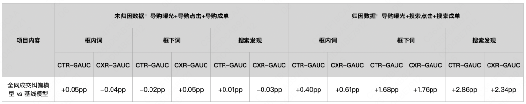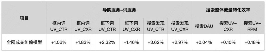 我们将全网成交纠偏模型在线上进行了实验,效果如下表所示: