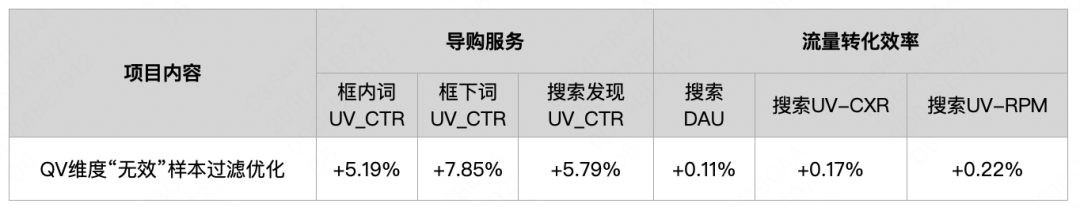 我们将离线最优的版本(QV维度“无效”样本过滤)在线上进行了实验,效果如下表所示: