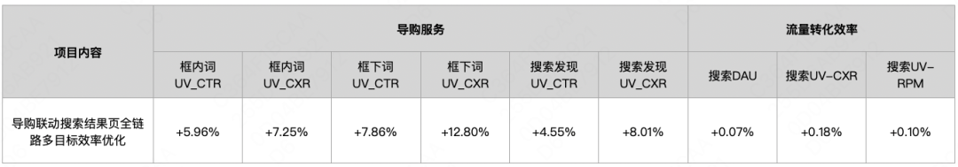 - 搜索框内词UV_CTR +187%、搜索框下词UV_CTR +141%、搜索发现词UV_CTR +121%。