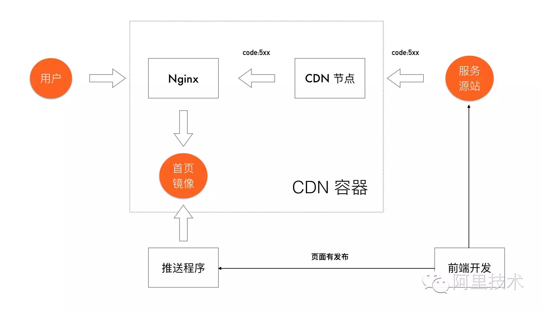 一旦源站任何异常,Nginx 都会转到与 Cache CDN 同机房的首页镜像上去,这个镜像内容就是淘宝首页的 HTML 备份源码。