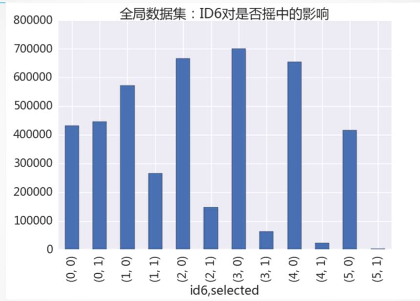 我们对全局数据集进行分析:当ID第七位为0时,你有53%的可能性抽到,抽中的概率比没抽中还高。随着第七位数字逐渐变大,中签率也越来越低,当第七位为5时,中签率接近两千分之一了!(图表和说明参考附录3)