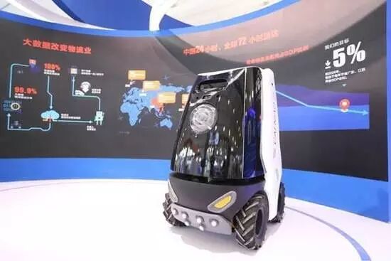 菜鸟网络E.T.物流实验室在双11前首次揭开神秘面纱,图为该实验室推出的智能配送机器人。