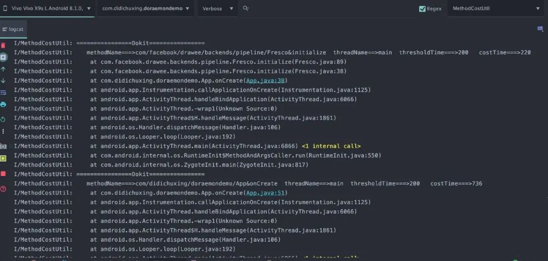Android:函数耗时主要通过 ASM 代码插装的方式,会在指定的包名下进行代码插装,统计每个函数的耗时,默认情况下会在控制台中将执行时间大于 200 微妙的函数调用栈打印出来。后续我们计划将函数耗时和平台端打通,记录下每一个函数耗时操作。