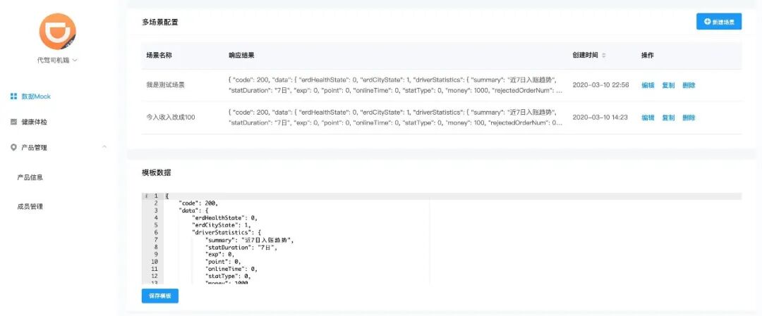 假如命中模板规则,我们会将真实的接口数据保存,用户可以进入模板页面, 找到指定的模板项并将模板数据上传到我们的 DoKit 后台并用于创建场景。