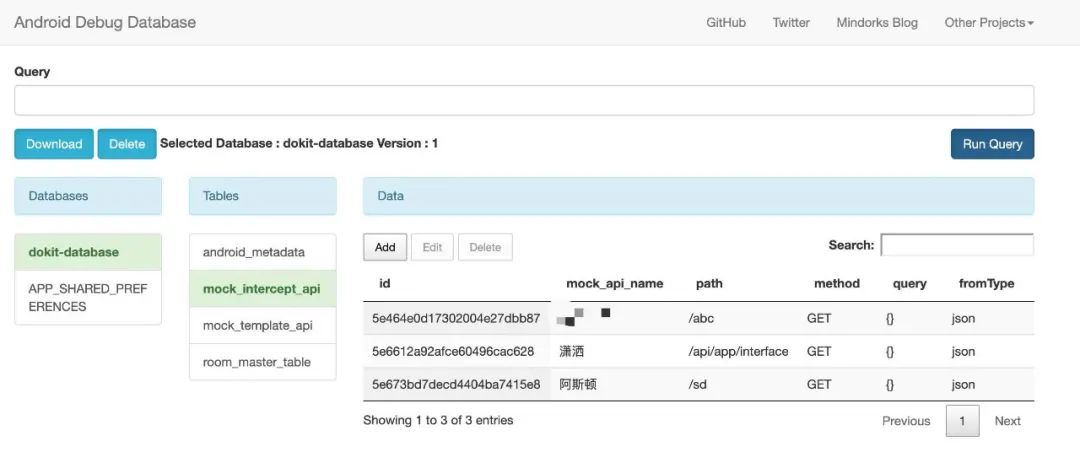 • iOS 是由社区同学 y500 提供的 iOSDebugDatabase, 感谢该同学的贡献。