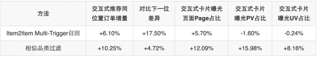 我们提出的策略,在明显提升交互式卡片曝光页面Page占比的同时,对比下一位差异明显提升,具体效果可以见下表: