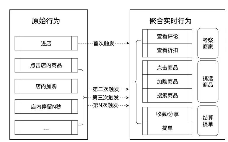由于用户在商家详情页的停留时长无法确定,且工程上无法实现在用户返回列表的瞬间请求推荐服务并展示结果,因此,在用户浏览商家详情页期间,系统需要连续多次向服务端请求推荐结果,用户在商家详情页的停留时长越长、需求越明确,服务端的推荐结果也就越精准。所以,我们采用“连续触发策略”,即随着用户在店内停留时间的增加,或者用户产生新的菜品点击、加购特征后,客户端会连续多次向后端服务发起请求,更新推荐结果。