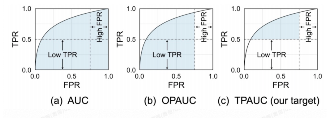 风控场景中一个比较典型的问题是真实场景的风险浓度远小于1%,线上产品的指标通常使用FPR对应的TPR来衡量,而分类模型的训练则往往利用CrossEntropy来进行约束。采用ACC去衡量模型和产品交付的性能,但CrossEntropy等损失函数的优化在于最小化全类别的错误率,这种模型优化函数与业务评测指标的不一致,势必会导致算法优化结果与实际线上效果的不对齐。从最终使用方式和业务结果出发,我们针对优化函数进行改进,使得训练任务和业务模型任务保持了优化方向的一致性。阿里巴巴与中科院计算所合作的相关技术(《When All We Need is a Piece of the Pie: A Generic Framework for Optimizing Two-way Partial AUC》)已经被机器学习国际顶会ICML 2021以长文形式接收。
