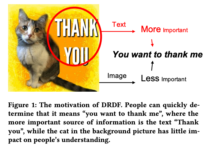 多模态问题并非只存在于复杂的图文混合内容或视频领域,单单一张包含文字的图片可能也会含有复杂的语义。在多模态领域过去很多研究工作主要集中在Early Fusion和Late Fusion上,我们发现对于不同的样本,其对应的图片和文本两个通道的重要性是不同的,因此需要根据不同的样本进行动态的权重选择(Experts Fusion)。本文将MoE(Mixture of Experts,多专家融合)的结构运用到多模态任务之中,灵活运用MoE中常见的路由机制,将其输出作为模态信息重要性判断的依据。DFDF框架的高度模块化也使得它在工业级别的应用上也具有很强的适配性和可用性。阿里巴巴和浙江大学联合研发的该项技术(《DRDF: Determining the Importance of Different Multimodal Information with Dual-Router Dynamic Framework》)已经被ACM Multimedia 2021接收,并被广泛应用于针对富含文字语义的图片(如表情包、短视频封面图、商品宣传照等)进行内容理解和安全识别。