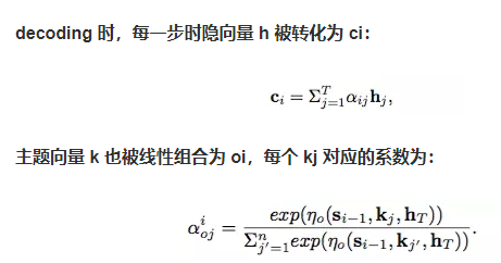 2)topic attention 利用 topic words 的状态信息和 input message 的最终状态作为额外的输入来减弱不相关主题词并加强相关主题词的概率;
