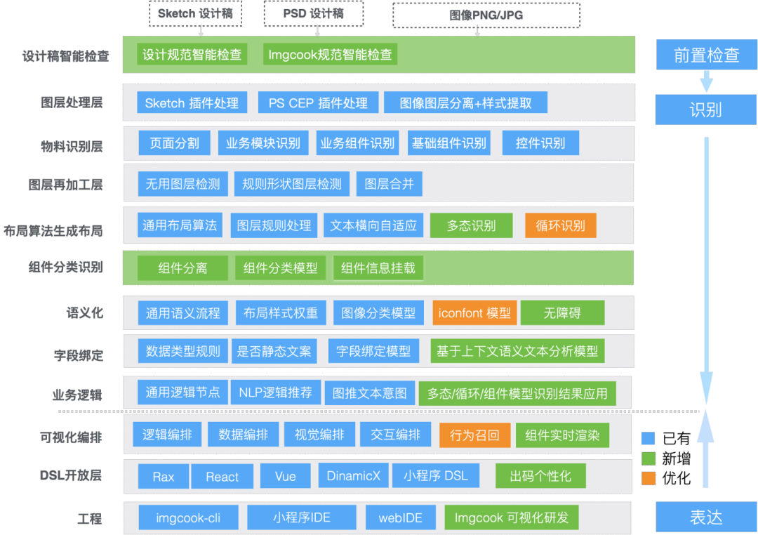 - 文本/图片的语义深度学习模型识别能力增强,用于完善或提升背景图/碎图合并和代码语义化。