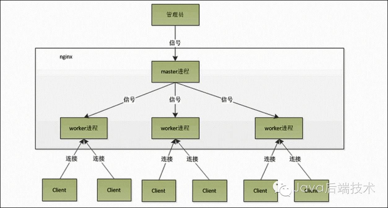 首先,Nginx在启动时,会解析配置文件,得到需要监听的端口与IP地址,然后在Nginx的master进程里面,先初始化好这个监控的socket(创建socket,设置addrreuse等选项,绑定到指定的IP地址端口,再listen),然后再fork(一个现有进程可以调用fork函数创建一个新进程。由fork创建的新进程被称为子进程 )出多个子进程出来,然后子进程会竞争accept新的连接。