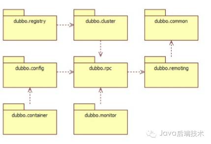 Dubbo以包结构来组织各个模块,各个模块及其关系,如图所示: