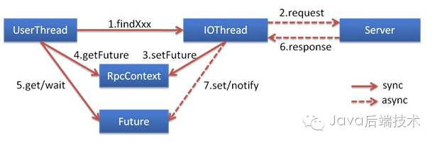 基于NIO的非阻塞实现并行调用,客户端不需要启动多线程即可完成并行调用多个远程服务,相对多线程开销较小。