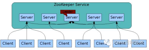 ZooKeeper集群由一组Server节点组成,这一组Server节点中存在一个角色为Leader的节点,其他节点都为Follower。当客户端Client连接到ZooKeeper集群,并且执行写请求时,这些请求会被发送到Leader节点上,然后Leader节点上数据变更会同步到集群中其他的Follower节点。