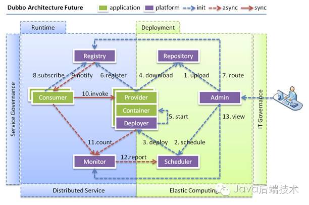dubbo运行架构如下图示: