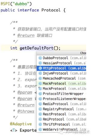 @SPI("dubbo")public interface Protocol{}
